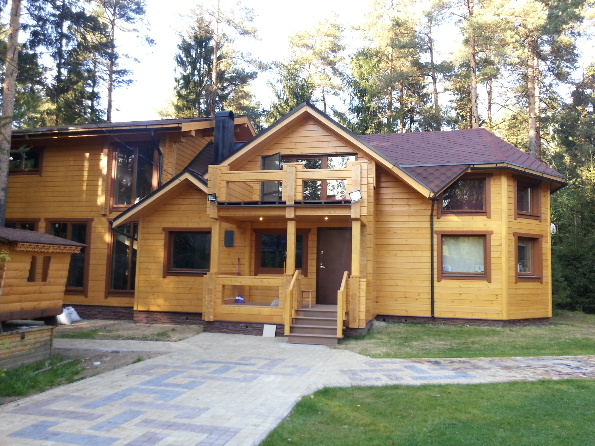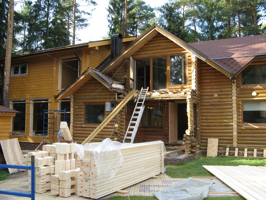 Дом заказчика был из оцилиндрованного бревна, он весь потрескался и местами сгнил. По заданию нужно было пристроить еще часть дома из клееного бруса и что то сделать со старой частью дома что бы не дуло и смотрелось красиво.