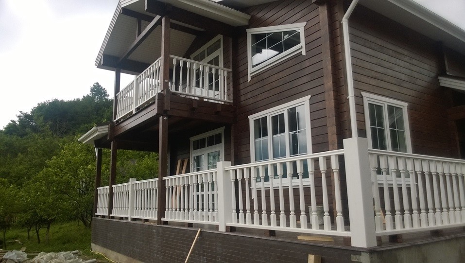 Учли все особенности участка и пожелания заказчика. Построили большой дом под ключ на усиленном фундаменте УШП. А также рядом маленький домик для гостей, так же на фундаменте УШП с теплыми полами и коммуникациями. Учли морской климат при покраске дома.